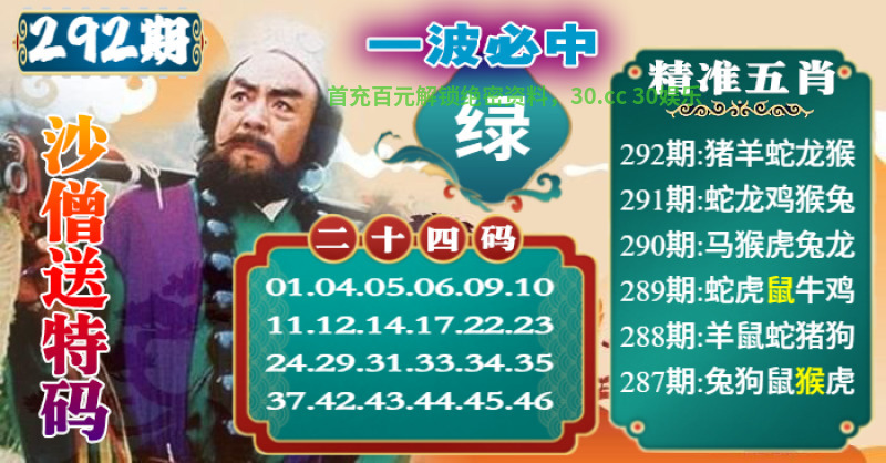 传真294期 今期生肖三六开,二三两头可能出。 红红红蓝特中奖,无脚却能行千里。 春雨绵绵润万物,卷上珠帘总不如。 特码可能是牛头,若暗若明西冷月。 出头露面 解:今期红红红蓝特中奖,解红波,春雨绵绵润万物,解天肖兔马猴猪牛龙。 拐特生肖:龙羊兔鼠牛猪马蛇鸡 主特:14.26.23.35.15.27.18.30.17.29.31.43 |