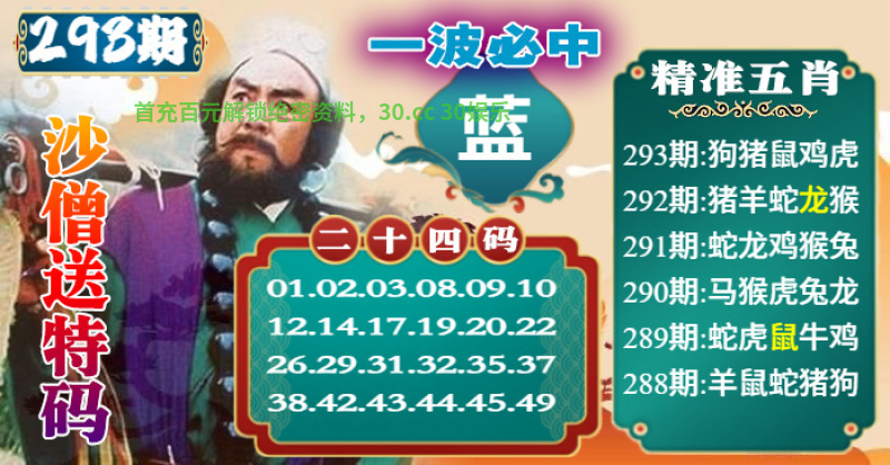 传真296期 今期生肖三九开,二四出门七相送。 单码本期要反弹,八戒古时戏嫦娥。 天字一发六可定,注意一三五发财。 马中赤兔人最爱,顺手牵羊开好码。 一手遮天 解:今期生肖三九开,解单肖兔牛猪鸡羊蛇,八戒古时戏嫦娥,解凶丑生肖鼠牛虎猴狗猪。 拐特生肖:龙虎猪猴蛇羊鼠兔马 主特:14.26.28.40.19.31.22.34.13.25.23.35 |